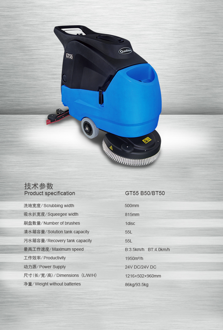 嘉得力最新款全自動GT55手推式洗地機,擁有超靜音和深層洗地效果,被眾多客戶稱為“外剛內靜型男人”。GT55手推式洗地機為企業創造安靜的舒適環境,極適合應用於醫院、博物館、圖書館、音樂廳、酒店、候機室等對噪音有嚴格要求的公共區域。 GT55手推式洗地機被國內外客戶深愛的優點: ●超靜音設計,低至58分貝 ●具備ECO運行模式,可持續工作5小時,實現全天候保潔 ●55 升水箱容量設計,有效減少加水操作,提高工作效率 ●機身流線美感設計,多視覺觀察地面,且設有清潔工具放置空間為清潔作業提供便利;防滑操控把手減少工人疲勞感,彙集了人機工程學設計優點 嘉得力自主承擔社會環境保護責任,傾力打造GT55手推式洗地機,積極推進ECO綠色模式的應用,機器材料均可回收利用,保證高度的可再用性及無污染性,實現了創新實用和環保的完美結合。 |